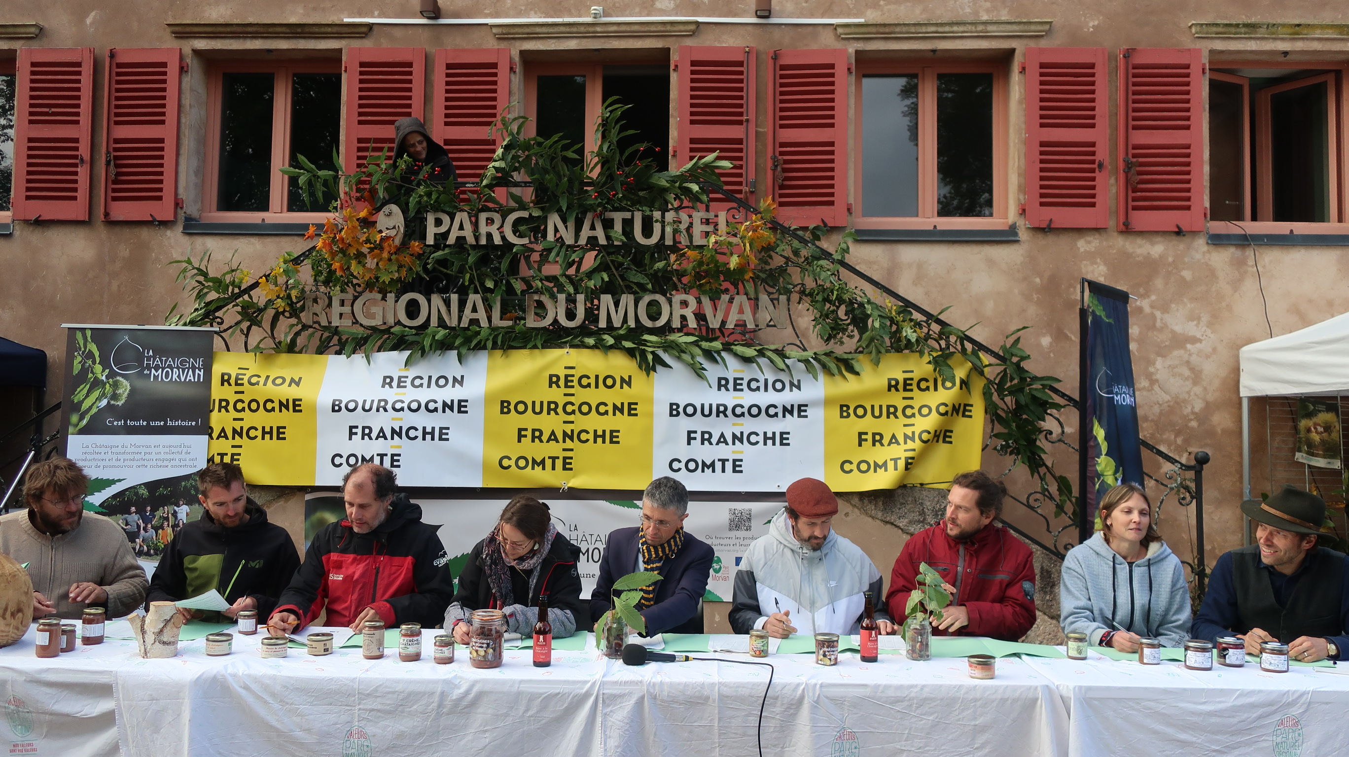 Après des visites de châtaigneraies et plusieurs formations techniques aux côtés de la Chambre d’Agriculture d’Ardèche et du C.E.R.D (greffage et entretien des châtaigneraies en 2022 et transformation fermière de la châtaigne en 2023), la signature d’un partenariat avec l’Association des Producteurs et Transformateurs des Marrons du Morvan (2023) et la structuration du collectif au sein de l’association Morvan Terroirs, le collectif La Châtaigne du Morvan vient de lancer la marque La Châtaigne du Morvan et de finaliser la charte encadrant leur fonctionnement.