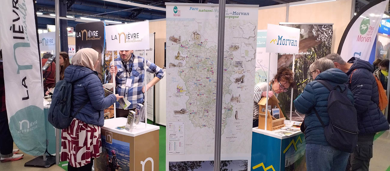 C’est dans ce cadre que Nièvre Attractive, l’Agence d’Attractivité de la Nièvre, a proposé au Morvan de partager leur stand. Le Parc et 5 Offices de Tourisme du territoire (Grand Autunois Morvan, Saulieu-Morvan, Grand Vezelay, Rives du Morvan et Morvan Sommets et Grands Lacs) sont venus se relayer pendant ces 3 jours pour faire la promotion de la Destination Morvan et répondre aux nombreuses demandes relatives à la randonnée sous toutes ses formes. Une belle première édition !