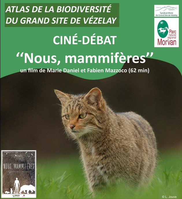Dans le cadre de « l’Opération Grand site de Vézelay » et de la réalisation d’un Atlas de la Biodiversité Communale, le Parc naturel régional du Morvan et la Société d’Histoire Naturelle d’Autun s’associent pour proposer un ciné-débat le vendredi 14 novembre 2025, à 19h00 à la salle des fêtes de Montillot (89) avec la projection du film ‘‘Nous, mammifères’’ de Marie Daniel et Fabien Mazzoco (62 min).