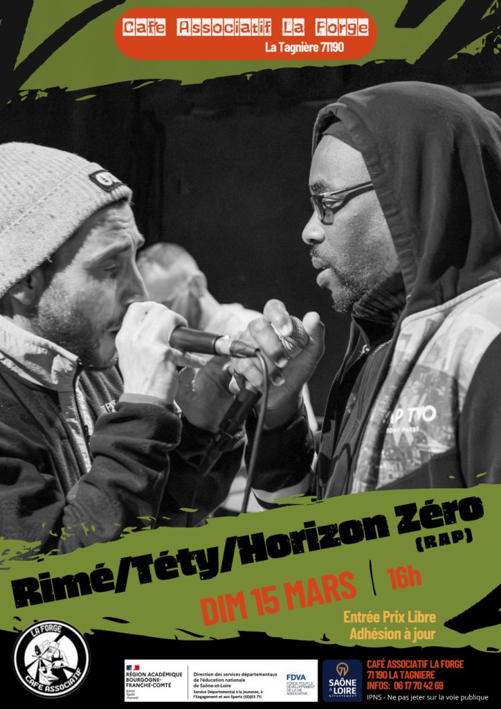 Accompagné, sur scène, par ses collègues et amis, Téty (Rap/Reggae dancehall) et Horizon Zéro (DJ/Rap), Rimé viendra présenter son nouvel album « J’aurais voulu être un art triste ».