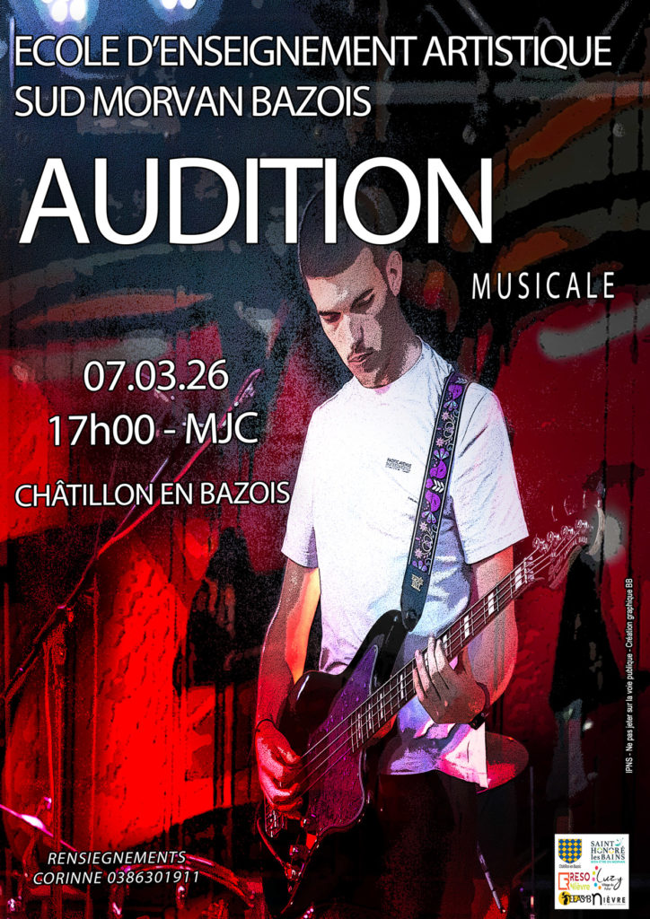 L’Ecole d’Enseignement Artistique Sud Morvan Bazois organise une audition de ses élèves le samedi 7 mars à 17 à la MJC de Châtillon-en-Bazois. Gratuit et ouvert à tous.