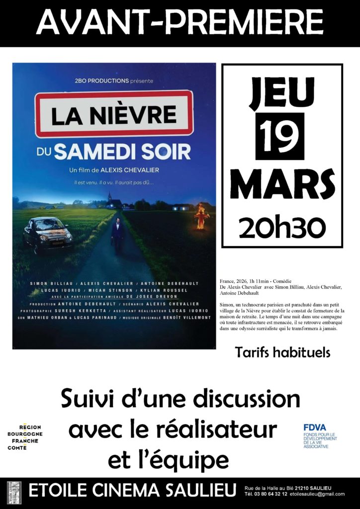 Jeudi 19 mars à 20h30, découvrez en Avant Première le film « LA NIÈVRE DU SAMEDI SOIR » de Alexis Chevalier.