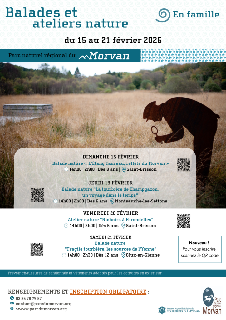 En parcourant le sentier de l’Étang Taureau vous découvrirez la riche histoire de ce plan d’eau pas comme les autres ! L’occasion également de découvrir la biodiversité de l’Étang et l’un des 12 sites de la Réserve naturelle régionale des tourbières du Morvan. Animation proposée à l’occasion de la Journée Mondiale des Zones Humides et des 10 ans de la Réserve.
