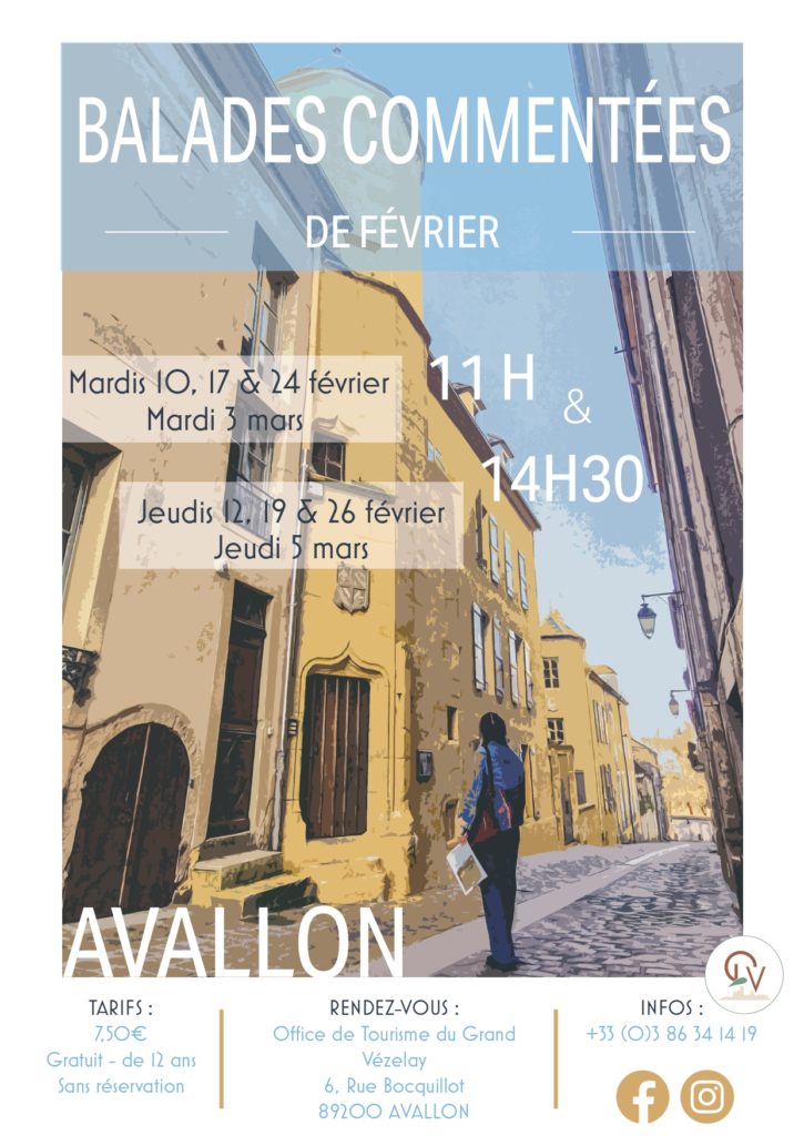 Laissez-vous embarquer pour un voyage à travers le temps, au cœur des ruelles pavées et des vieux remparts d’Avallon. Guidés par nos accompagnateurs passionnés, vous découvrirez les secrets et les petites histoires qui façonnent l’âme de cette cité médiévale perchée sur son éperon rocheux. Une promenade vivante et chaleureuse, entre patrimoine et mémoire locale.
