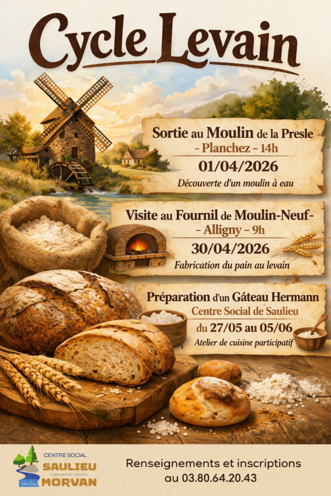 Venez découvrir la réalisation de pain en levain, Visite du Moulin de Presle, Visite du Fournil à Alligny et réalisation d’un gâteau Hermann
