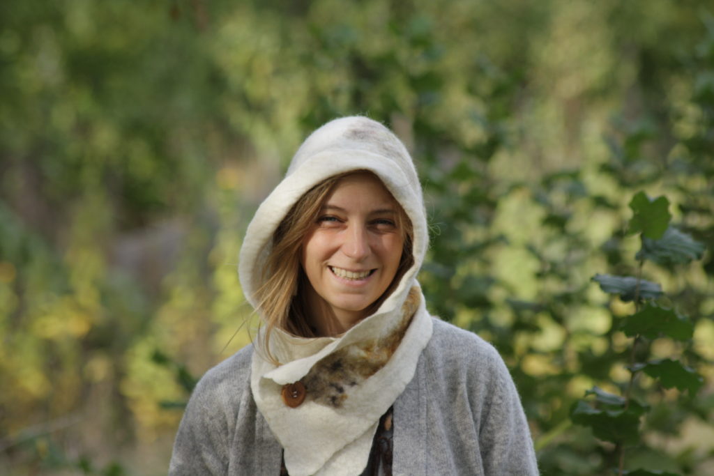Découverte des propriétés de la laine, préparation, cardage et feutrage pour la confection d’une capuche ou d’un bonnet. Feutrage à la main. Travail avec de la laine de moutons locaux et teintures végétales.