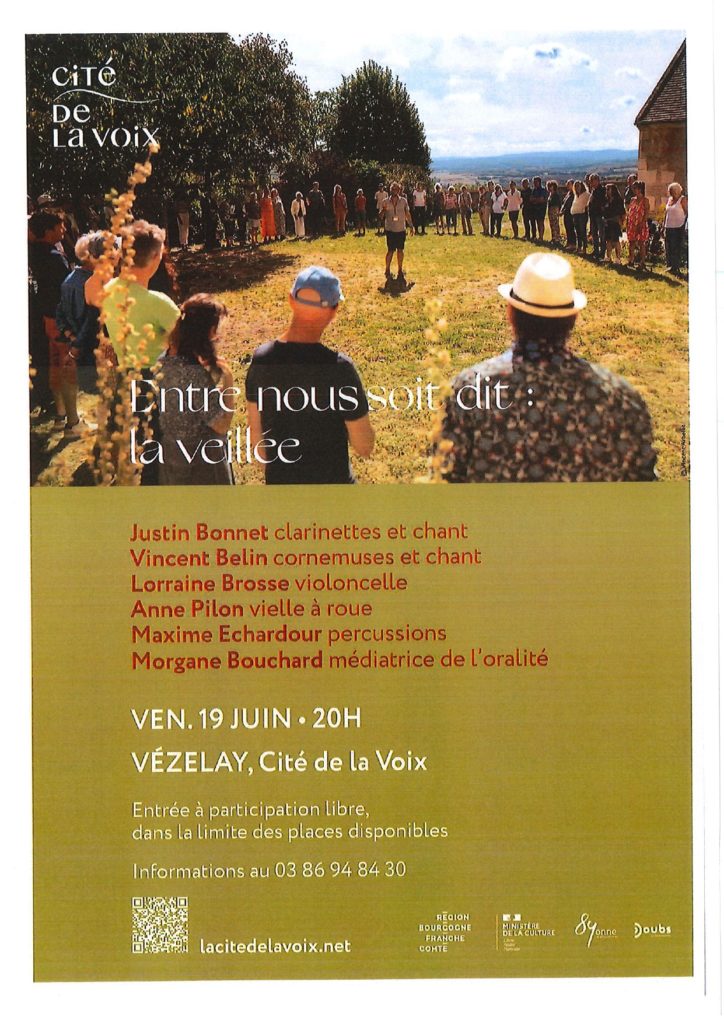 À l’occasion de la fête de la musique, l’équipe vous propose une veillée conviviale et participative, comme une grande auberge espagnole de l’oralité : chansons, musiques à danser, histoires, poésies, anecdotes…