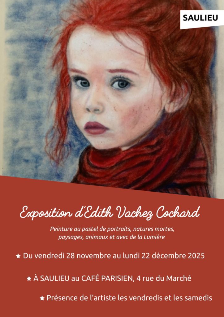 Découvrez les peintures d’Edith Vachez-Cochard au café Parisien de Saulieu. Pastels de portraits, natures mortes, et animaux vous attendent.