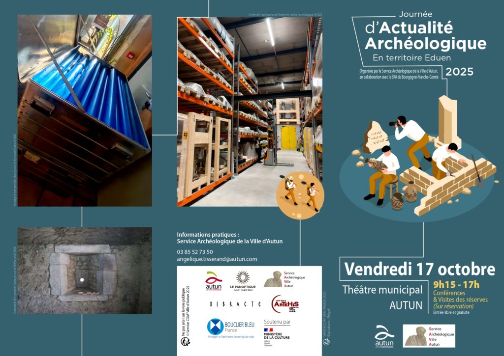 La seizième édition des « Journées d’Actualité Archéologique » se tient au théâtre municipal d’Autun, organisée par le Service Archéologique de la ville d’Autun, en collaboration avec le Service Régional de l’Archéologie de Bourgogne-Franche-Comté.