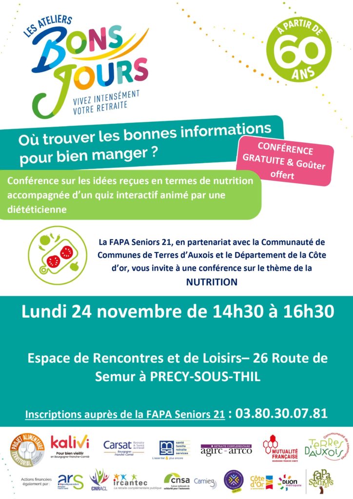 Conférence sur la nutrition à destination des habitants de 60 ans et plus par la FAPA Seniors 21, la Communauté de Communes des Terres d’Auxois et le département de la Côte d’Or.