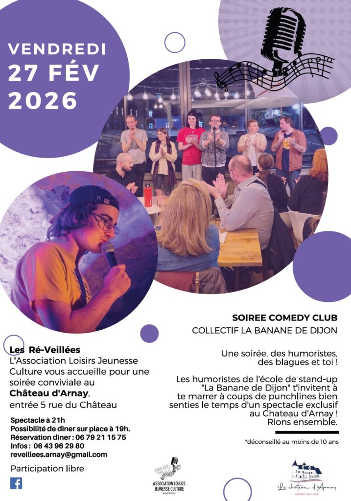 Les humoristes de l’école de stand-up « La Banane de Dijon » t’invitent à te marrer à coups de punchlines bien senties le temps d’un spectacle exclusif au Chateau d’Arnay !