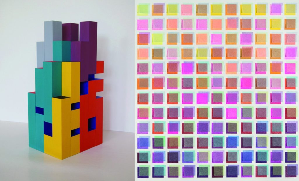 Ma démarche est multipolaire et tente de faire la synthèse entre diverses influences. D’une part une recherche très formelle, un goût pour les compositions géométriques, les formes simples inspirées du constructivisme et des recherches sur la couleur menées par Kandinsky ou Josef Albers.