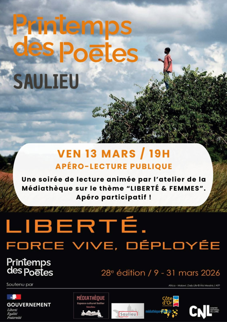 A l’occasion du Printemps des poètes 2026, la Médiathèque de Saulieu vous propose une programmation dédiée comprenant un cycle de lecture à voix haute, une lecture en nocturne et des concerts célébrant la poésie et la condition féminine.