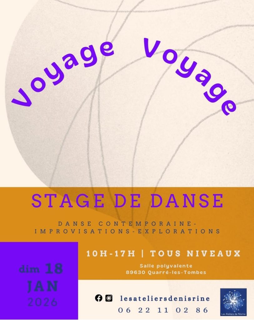 Stage de danse contemporaine avec les ateliers de Nisrine : le voyage induit un déplacement ; nous aussi à travers des qualités différentes de déplacements et des intentions qui nous portent au-delà de notre espace alentour, nous danserons dans l’espace que nous propose cette grande salle. Et pourquoi ne pas s’inspirer des cartes topographiques pour danser ?